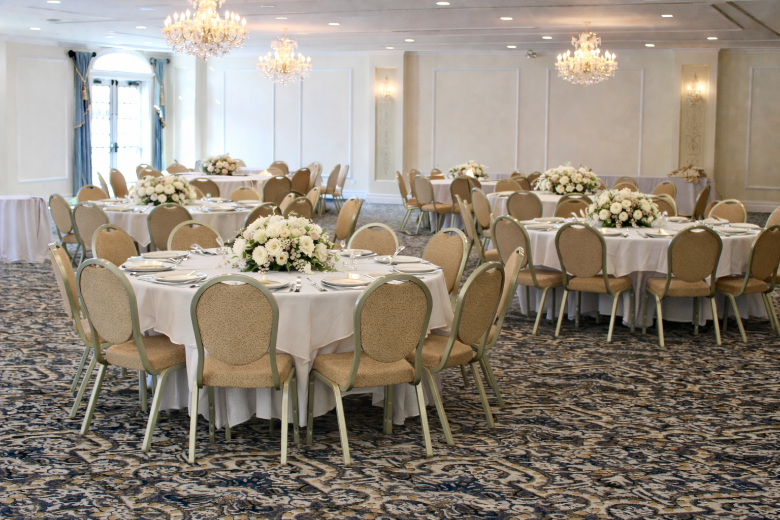 Like the rest of our grand mansion, you’ll find that all our ballrooms are designed with a rich, elegant palette of tone-on-tone neutrals to compliment – not compete with – the colors you’ve selected for your bridal party.