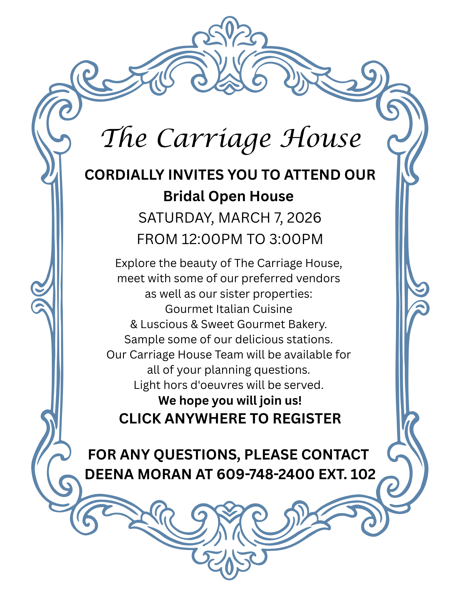 The Carriage House located in beautiful Galloway, NJ was inspired by the grace and timeless beauty of the magnificent Southern Mansions.